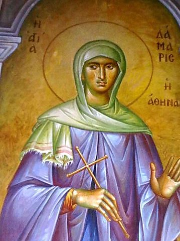 Όπως αναφέρεται στις Πράξεις των Αποστόλων, ήταν η πρώτη Αθηναία γυναίκα που που μαζί με τον άγιο Διονύσιο τον Αρεοπαγίτη πίστεψαν στο κήρυγμα του Αποστόλου Παύλου το 52 μ.Χ. στον Άρειο Πάγο. Πιστεύεται ότι ήταν σύζυγός του. Προς τιμή της, δόθηκε το όνομά της σε Αθηναϊκή οδό.
