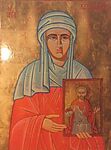 | Η αγία Καλλισθένη με την εικόνα του πατέρα της Αύδακτου |
