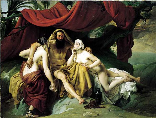 Έτσι ο Λωτ κατοίκησε στα βουνά σε μια σπηλιά μαζί με τις δύο κόρες του. Εκεί, οι κόρες του που είχαν στερηθεί την ανδρική συνεύρεση τον μέθυσαν δυο συνεχόμενες βραδιές και συνουσιάσθηκαν με τον πατέρα τους. Από αυτή την αιμομικτική, βδελυρή και βλάσφημη πράξη προέκυψαν δυο αγόρια.