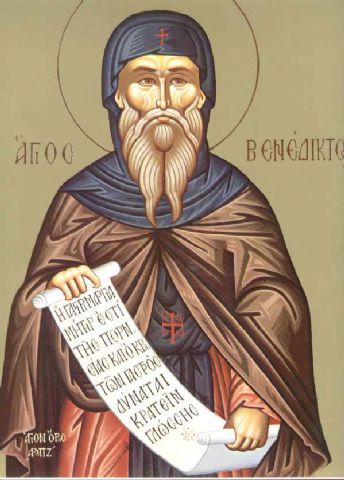 Γεννήθηκε στη Νουρσία της Ιταλίας και έζησε τον 6ο αιώνα μ.Χ. Οι γονείς του ήταν ευγενείς και πλούσιοι, αλλά και αφοσιωμένα τέκνα της Εκκλησίας. Υπήρξε ιδρυτής του μοναχικού τάγματος των Βενεδικτίνων, που υπάρχει μέχρι και σήμερα στη δυτική Εκκλησία. Ο όσιος Βενέδικτος πέθανε ειρηνικά το έτος 543, σε ηλικία 62 χρονών.