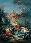 | Ο Ερμής εμπιστεύεται το μεγάλωμα του Διόνυσου στις Νυσιάδες νύμφες. François Boucher. . |