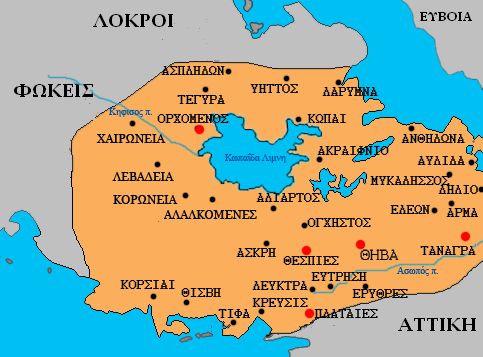 | Αρχαίος χάρτης Βοιωτίας, πάνω δεξιά η πόλη στην οποία έδωσε το όνομα της η ομώνυμη νύμφη |