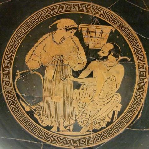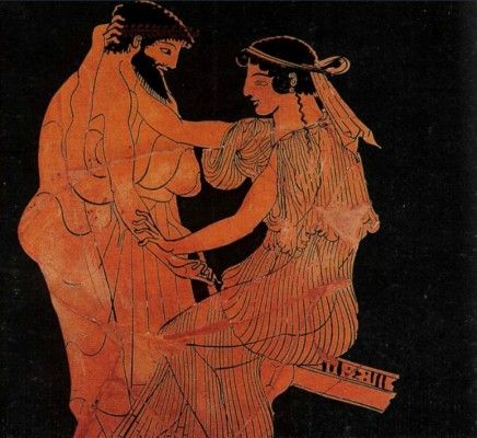 | Τρυφερή σκηνή ζευγαριού Αγγειοπλάστης Ιέρων και αγγειογράφος Μάκρονας. |