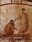 | | | Η Θεραπεία της Αιμορροούσας, τοιχογραφία από την Κατακόμβη των Μαρκελλίνου και Πέτρου, αρχές 4ου αι. μ.Χ. |
