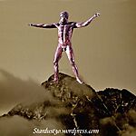 Αναπαράσταση του αγάλματος του "Αθώου Δία" στην κορυφή του όρους Άθω