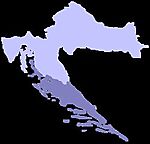 Χάρτης της Κροατίας. Με βαθύ χρώμα σημειώνεται η περιοχή της Δαλματίας.
