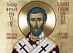 Στα χρόνια του μεγάλου Κωνσταντίνου (330 μ.Χ.), κάποιος φιλόσοφος από την Τύρο, που ονομαζόταν Φρουμέντιος, πήγε στην Αβησσυνία (Αιθιοπία) για να συλλέξει ιστορικά στοιχεία γι' αυτή τη χώρα. Έγινε γνωστός στη βασιλική αυλή για τη λογιότητά του και διορίστηκε σε ανώτερη διοικητική θέση. Τη θέση και την επιρροή του, χρησιμοποίησε για την έναρξη διάδοσης του χριστιανισμού. Κατόπιν επέστρεψε στην Αλεξάνδρεια, όπου ανακοίνωσε στον τότε αρχιεπίσκοπο Μέγα Αθανάσιο, ότι μια πιο συστηματική χριστιανική εργασία σ' αυτή τη χώρα θα είχε αποτελέσματα καρποφόρα. Ο Μέγας Αθανάσιος συμφώνησε και του ανέθεσε την Ιεραποστολή εκείνη, αφού τον χειροτόνησε επίσκοπο (το έτος 341 μ.Χ.) με τον τίτλο «Ἀξώμης». Και η Ιεραποστολή εκείνη, με βοηθό του Φρουμεντίου τον Αιδέσιο, έφερε πράγματι αρκετή καρποφορία.