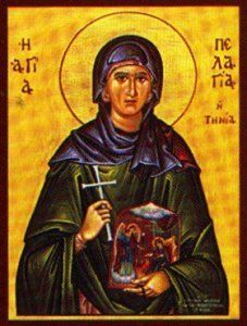 Η Αγία Πελαγία η Παρθένος καταγόταν από την Αντιόχεια της Συρίας και από ένδοξο γένος (στα χρόνια του βασιλιά Νουμεριανού 282 - 284 μ.Χ.). Όταν έμαθε ο άρχοντας της Αντιόχειας ότι η Πελαγία ήταν χριστ