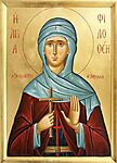 Η Οσιοπαρθενομάρτυς Φιλοθέα, γεννήθηκε στο Μολύβοτο της Παμφυλίας στη Μικρά Ασία.Η Φιλοθέα έχασε νωρίς τους γονείς της, τη μητέρα της σε ηλικία τριών ετών και τον πατέρα της λίγο καιρό μετά τον γάμο της. Ο σύζυγός της χειροτονήθηκε πρεσβύτερος, αλλά και αυτός πέθανε μετά από έξι έτη έγγαμου βίου. Η Φιλοθέα, αφού απελευθέρωσε τους δούλους της οικογένειας και διαμοίρασε τα πλούτη σε φτωχούς, εκκλησίες και μοναστήρια, μαζί με μία δούλη της αποσύρθηκε σε ένα νησί της λίμνης, που βρισκόταν κοντά στο Μολύβοτο.