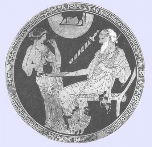 | Η Εκαμήδη εξυπηρετεί τον Νέστορα. |