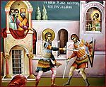 Σύμφωνα με τους συναξαριστές ο Νέστωρας σκότωσε σε μονομαχία το Λυαίο, ένα από τα πρωτοπαλίκαρα του αυ
