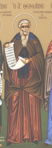 Ο Άγιος Θεοφάνης ο Γραπτός ήταν γιος του Ιωνά από την Παλαιστίνη, και υπήρξε μαθητής, μαζί με τον αδελφό του Θεόδωρος, στη μονή του αγίου Σάββα. Εδώ αξίζει να σημειωθεί ότι οι μοναχοί του Αγίου Σάββα,
