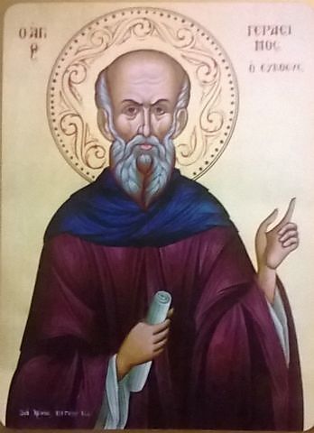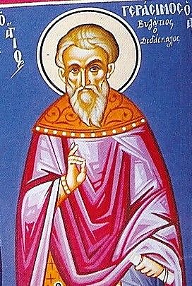 Ο Όσιος Γεράσιμος ο Ιορδανίτης γεννήθηκε στη Λυκία τον 5ο αιώνα μ.Χ. από ευσεβείς και ταπεινούς γονείς και εκ βρέφους αφιερώθηκε στον Θεό. Σε νεαρή ηλικία ασπάσθηκε την αίρεση των Μονοφυσιτών και κατό
