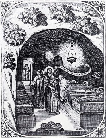 Το Πάσχα του 1463 μ.Χ. επισκέφτηκε τον τόπο όπου βρίσκονταν τα λείψανα των Πατέρων των Σπηλαίων και φώναξε: «Άγιοι πατέρες και αδελφοί, σήμερα είναι μεγάλη ημέρα! Χριστός Ανέστη» και τότε άκουσε μια φ