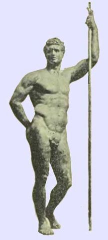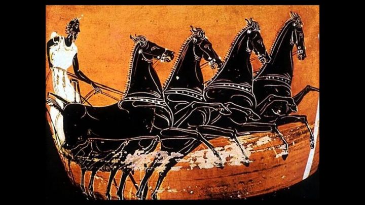 Αρχαίος Έλληνας Ολυμπιονίκης από την Πέργαμο Μικράς Ασίας στο πωλικό τέθριππον (αρματοδρομία με άρματα συρόμενα υπό τεσσάρων νεαρών αλόγων, εξού και η ονομασία πωλικό=νεαρό τέθριππον), στην 126η Ολυμπ