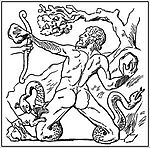 Αναπαράσταση του αγάλματος του "Αθώου Δία" στην κορυφή του όρους Άθω