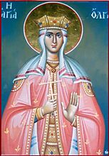 Η Αγία αυτή ήταν βασίλισσα της Ρωσίας και δια του αγίου Βαπτίσματος μετονομάσθηκε Ελένη, το έτος 957 μ.Χ. Δύσκολα μπορεί να περιγράψει κανείς τις άοκνες προσπάθειές της για τη χριστιανική διαφώτιση του Ρώσικου λαού. Έκανε τα πάντα για να γνωρίσουν οι Ρώσοι την αλήθεια του Ευαγγελίου του Χριστού. Η Αγία αυτή, όταν ήλθε με την ακολουθία της κάποτε στο Βυζάντιο, έτυχε θερμής υποδοχής για τους αγώνες της υπέρ του Χριστιανισμού. Πάνω στον αγώνα αυτό, παρέδωσε την τελευταία της πνοή την 11η Ιουλίου 969 μ.Χ.