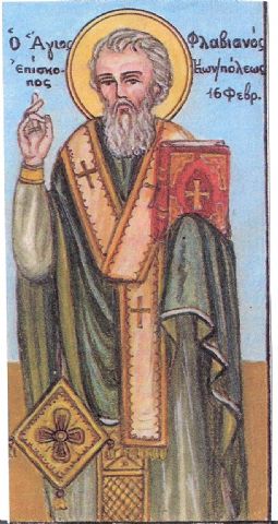 O Άγιος Φλαβιανός, ήταν πρεσβύτερος της Αρχιεπισκοπής Κωνσταντινουπόλεως και σκευοφύλακας του ναού της Αγίας Σοφίας. Γνωστός για τις αρετές και τα πνευματικά του χαρίσματα, διαδέχθηκε τον Άγιο Πρόκλο