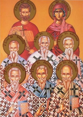 31 Οκτωβρίου > Άγιοι Στέφανος, Bαρνάβας, Tρόφιμος, Δορυμέδων, Kοσμάς, Δαμιανός, Σάββας, Bάσης, Αβράμιος «και της συνοδίας αυτών»