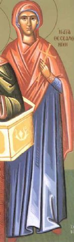 Η Θεσσαλονίκη ήταν κόρη ενός Ιερέα της Ελληνικής θρησκείας, πού ονομαζόταν Κλέων. Όταν έμαθε ότι η κόρη του έγινε χριστιανή, της ζήτησε να επανέλθει στην θρησκεία της, κάτι που δεν αποδέχθηκε. Ακολούθησαν τότε βασανιστήρια, αποστέρηση από την περιουσία της και εξορία, όπου και πέθανε.