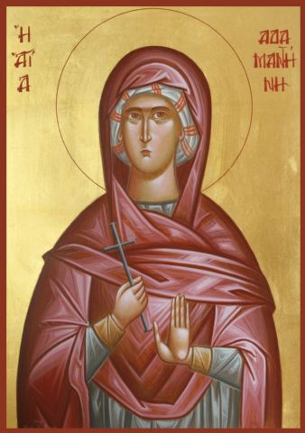 Μια από τις 40 ασκήτριες παρθένους που μαρτύρησαν μαζί με το δάσκαλο τους Άγιο Αμούν, επί βασιλέως Λικινίου στην Αδριανούπολη της Θράκης. Τα ονόματα τους όπως δίνονται είναι Αδαμαντίνη, Αθηνά, Ακριβή, Αντιγόνη, Αρηβοϊα, Ασπασία, Αφροδίτη, Διώνη, Δωδώνη, Ελπινίκη, Ερασμία, Ερατώ, Ερμηνεία, Ευτέρπη, Θάλεια, Θεανώ, Θεονόη, Θεονύμφη, Θεοφάνη, Καλλιρόη, Καλλίστη, Κλειώ, Κλεονίκη, Κλεοπάτρα, Κοραλία, Λάμπρω, Μαργαρίτα, Μαριάνθη, Μελπομένη, Μόσχω, Ουρανία, Πανδώρα, Πηνελόπη, Πολύμνια, Πολυνίκη, Σαπφώ, Τερψιχόρη, Τρωάδα, Χάιδω, και Χαρίκλεια. Είναι άξιο αναφοράς ότι σε αυτά τα ονόματα περιλαμβάνονται μεταξύ πολλών άλλων αρχαίων Ελληνικών ονομάτων, 8 από τα 9 ονόματα των Μουσών της Αρχαίας Ελλάδας. Λείπει μόνο το Καλλιόπη που όμως γιορτάζει στις 8 Ιουνίου. Ἀθλητῶν αἱ χορείαι, δεῦτε συνδράμετε καὶ τεσσαράκοντα κόρας μετὰ Ἀμμοὺν εὐσεβοῦς μεγαλύνατε, λαμπρῶς πανηγυρίζουσι ὅτι ἐνήθλησαν στερρῶς τῇ ἀσκήσει ἐν Χριστῷ, ῥωσθεῖσαι καὶ λαμπρυνθῆσαι πρεσβεύουσαι τῷ Κυρίῳ, ἐλεηθῆναι τὰς