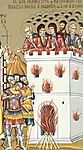 Με εντολή του βασιλιά οι στρατιώτες, στις 10 Οκτωβρίου, έβαλαν φωτιά στο μοναστήρι και τους έκαψαν όλους ζωντανούς.