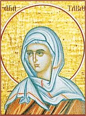 Ευσεβέστατη και φιλάνθρωπη χριστιανή, που κατοικούσε στην Ιόππη. Ήταν εξειδικευμένη υφάντρια πού κατασκεύαζε χιτώνες και ιμάτια, τα όποια πωλούσε και από τα έσοδα συντηρούσε φτωχούς, χήρες και ορφανά. Την ανέστησε ο Άγιος Απόστολος Πέτρος όταν ασθένησε. Μετά την ανάστασή της έζησε αρκετά χρόνια, γεμάτα αγαθά έργα και ελεημοσύνες. Ο θάνατος την βρήκε σε βαθιά γεράματα.