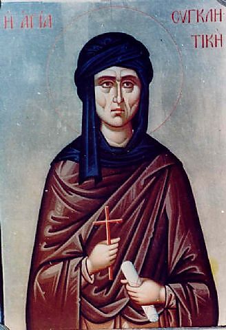 Η Αγία Συγκλητική γεννήθηκε περί το 270 μ.Χ στη Μακεδονία. Οι γονείς της, ήταν πλούσιοι και ευσεβείς Χριστιανοί. Προτίμησαν την Αλεξάνδρεια να εγκατασταθούν μόνιμα, γιατί εκεί είχαν ακούσει, ότι υπήρχαν περισσότεροι Χριστιανοί. Οι γονείς κατάφεραν να τη μορφώσουν όσο καλύτερα μπορούσαν, δίδοντάς της συγχρόνως και Χριστιανική ανατροφή. Η σπάνια σωματική της ομορφιά, ήταν για τους νέους της εποχής, μια διαρκής πρόκληση. Τα προξενιά, έφθαναν στους γονείς της το ένα μετά το άλλο και πολλοί ήταν οι νέοι, που τη ζητούσαν σε γάμο. Ωστόσο η ίδια επέλεξε μετά το θάνατο των γονέων της να γίνει μοναχή και να δωρίσει την περιουσία της στους φτωχούς.