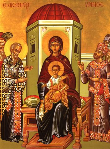 Η ιερά εικόνα της Θεοτόκου του Ακαθίστου Ύμνου φυλάσσεται στο Καθολικό της ιεράς μονής Χιλανδαρίου του Αγίου Όρους. Το έτος 1837 μ.Χ., κατά την διάρκεια πυρκαγιάς, οι μοναχοί έψαλλαν τον Ακάθιστο Ύμνο και η εικόνα παρέμεινε άθικτη.