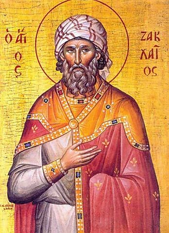 Ένας από τους 70 Αποστόλους αρχιτελώνης στην Ιεριχώ. Είναι ο γνωστός αρχιτελώνης της Ιεριχούς, που ανέβηκε στη συκομουριά (επειδή δεν τον ευνοούσε το ύψος του) για να δει τον διερχόμενο Ιησού. Ο Κύριος θαύμασε την πίστη του, έδωσε οδηγίες να κατεβεί από το δένδρο και να μεταβούν μαζί στο σπίτι του, αφού συγχώρησε όλα τα αμαρτήματα που είχε διαπράξει μέχρι εκείνη τη στιγμή. Λέγεται, ότι μετά την ανάληψη του Κυρίου, ο Ζακχαίος ακολούθησε τον Απόστολο Πέτρο, από τον οποίο και χειροτονήθηκε αργότερα Επίσκοπος Καισαρείας.
