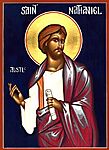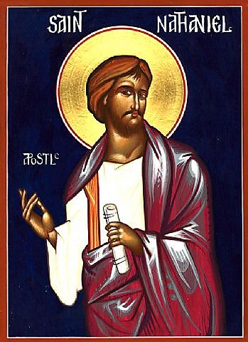 Ο Άγιος Ναθαναήλ (Σίμων ο Ζηλωτής ή Βαρθολομαίος - υιός του Θολομαίου) καταγόταν από την Κανά της Γαλιλαίας όπου ο Κύριος πραγματοποίησε το πρώτο του θαύμα. Ήταν στενός φίλος του Αποστόλου Φιλίππου, ο οποίος και του ανήγγειλε την υλοποίηση της προφητείας στο Πρόσωπο του Ιησού Χριστού. Στη συνέχεια έγινε ένας εκ των 12 Αποστόλων για τον οποίο ο Κύριος έπλεξε το εγκώμιο λέγοντας: «Ιδε αληθής Ισραηλίτης, εν ω δόλη ουκ έστιν». (Να ένας αληθινός Ισραηλίτης στον οποίο δεν υπάρχει δόλος). Η αποστολική δράση του Απόστολου Ναθαναήλ επεκτείνεται μέχρι την Αφρική, τη Μαυριτανία και τη Βρετανία, όπου και σταυρώθηκε από ειδωλολάτρες.