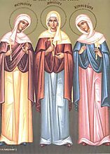Οι Αγίες Μηνοδώρα, Μητροδώρα και Νυμφοδώρα ήταν αδελφές και κατάγονταν από τη Βιθυνία. Η λάμψη της παρθενίας και η ωραιότητα των ψυχών και των σωμάτων της έκαναν της τρεις αδελφές να είναι καύχημα των χριστιανών ενώ οι φροντίδες και οι συνήθειες του κόσμου δεν της απασχολούσαν. Δηλαδή φρόντιζαν να στολίζουν τον εαυτό τους με συστολή και σωφροσύνη και όχι με φιλάρεσκα πλεξίματα των μαλλιών τους ή με χρυσά ή μαργαριτένια κοσμήματα ή με ρούχα πολυτελή. Για την αγάπη, λοιπόν του Χριστού, άφησαν την πατρίδα της και πήγαν να κατοικήσουν σε ένα λόφο, κοντά στα Πύθια θερμά λουτρά. Εκεί ασκήτευαν και καλλιεργούσαν ακόμα περισσότερο τη σωφροσύνη της. Γι' αυτό αξιώθηκαν από το Θεό να θεραπεύουν ασθένειες, και έτρεχε κοντά της πλήθος κόσμου. Όταν το έμαθε αυτό ο έπαρχος Φρόντων, έστειλε και συνέλαβε της τρεις αδελφές. Βλέποντας, της τη φρόνηση και τη σύνεση, αλλά και την αφοβία με την οποία τον αντιμετώπισαν, διέταξε και της βασάνισαν με τα πιο φρικτά βασανιστήρια. Της υπέμειναν με ανδρεία τα μαρτύρια και έτσι ένδοξα παρέδωσαν της ψυχές της στο νυμφίο της Χριστό (290 μ.Χ.). Ο έπαρχος θέλησε να κάψει τα σώματα της, αλλά οι φλόγες έκαψαν τον ίδιο και έπειτα καταρρακτώδης βροχή έσβησε τη φωτιά. Τα σώματα των τριών παρθένων τάφηκαν με σεβασμό από της χριστιανούς.
