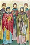 Οι Άγιοι Ηλιόφωτοι ήταν οι Επαφρόδιτος, Αμμώνιος, Χουλέλαιος, Ευσθένιος και Ηλιόφωτος που θεωρείται ο ηγέτης τους (ενώ κάποιες άλλες πηγές αναφέρουν τους Ηλιόφωτο, Αμμώνιο, Αυξουθένιο, Ευτύχιο, Ευφημι