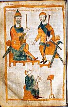 Ο Καρλομάγνος (αριστερά) και ο Πεπίνος ο Κυφός. Αντίγραφο του 10ου αιώνα χαμένου πρωτοτύπου από το 830.
