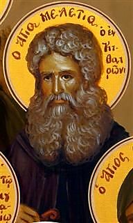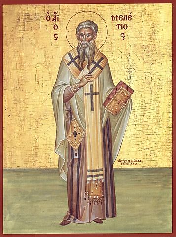 Ο Άγιος Μελέτιος γεννήθηκε περί το 310 μ.Χ. στην Μελιτηνή της Μικράς Αρμενίας. Φανατικός πολέμιος των αιρετικών, Ομοιουσιανών και Αρειανών. Εξορίστηκε από τον αυτοκράτορα Κωνστάντιο στην Αρμενία.