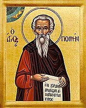 Ταῖς τῶν δακρύων σου ῥοαῖς, τῆς ἐρήμου τὸ ἄγονον ἐγεώργησας· καὶ τοῖς ἐκ βάθους στεναγμοῖς, εἰς ἑκατὸν τοὺς πόνους ἐκαρποφόρησας· καὶ γέγονας φωστὴρ τῇ οἰκουμένῃ, λάμπων τοῖς θαύμασιν, Ποιμὴν Πατὴρ ἡμῶν ὅσιε, πρέσβευε Χριστῷ τῷ Θεῷ, σωθῆναι τὰς ψυχὰς ἡμῶν.