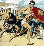 Αρχαίος Έλληνας Ολυμπιονίκης από την Πέργαμο της Μικράς Ασίας νικητής στην 202α Ολυμπιάδα το 29 μ.Χ. στο Στάδιον, αγώνας ταχύτητας 600 ποδών κάτι σαν το σημερινό διακοσάρι.