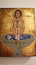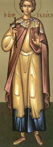 Ο Άγιος Γελάσιος ήταν μίμος (ηθοποιός) στο επάγγελμα. Όταν διατάχθηκε να εμπαίξει το βάπτισμα των Χριστιανών, ως ο από μίμων Πορφύριος βαπτίσθηκε και τελειώθηκε διά σπάθης.