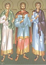 Και οι τρεις, μαρτύρησαν επί βασιλέως Πρόβου και διοικητού Αντιοχείας Ηλιοδώρου (278 μ.Χ.). Οι Τρόφιμος και Σαββάτιος συνελήφθησαν όταν γιουχάισαν τις γιορτές που γίνονταν προς τιμή του θεού Απόλλωνα στην Αντιόχεια. Οδηγήθηκαν στο δικαστήριο και καταδικάστηκαν σε μαστίγωση και αποκεφαλισμό. Την ίδια τύχη είχε και ο Δορυμέδων που πήγε να τους εμψυχώσει.