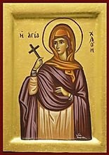 Τω φέγγει της χάριτος, καταυγασθείσα τόν νουν, συνόμιλος πέφηνας, των Αποστόλων Χριστού, καρδίας ευθύτητα όθεν ή ενημέρωσε Κορίνθω, Εκκλησία γεραίρει, Χλόη σε μακαρία, ως θεράπαιναν θείαν, πρεσβεύουσαν άπαύστως, υπέρ των ψυχών ημών.