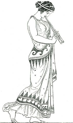 Αυλητρίδα. Σύμφωνα με εικόνα αρχαίου αγγείου Falke Jacob Von