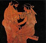 Τρυφερή σκηνή ζευγαριού Αγγειοπλάστης Ιέρων και αγγειογράφος Μάκρονας.
