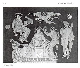 | Παριστάνει την "ωραία" Ελένη γυμνή, καθώς την ντύνουν και την στολίζουν θεραπαινίδες και ένας δούλος της φοράει τα σανδάλια, ενώ ο Πάρις παρακολουθεί και ο φτερωτός Έρωτας υπερίπταται. |
