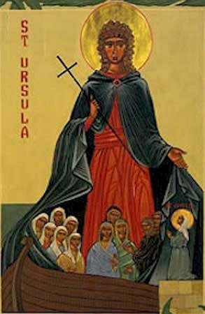 Κόρη χριστιανού βασιλιά της Βρετανίας έτσι και της δώθηκε περίοδος χάριτος τριών ετών μέχρι να παντρευτεί έναν ειδωλολάτρη πρίγκιπα. Στο ταξίδι της με άλλες δέκα παρθένες προς τη Ρώμη το 451, έπεσαν θ ...