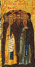 Ως αγιόλεκτος του Λόγου χορεία, εν τω Σινά και Ραϊθώ οι Αββάδες αγγελικώς ηρίστευσαν αγώσιν ιεροίς ιδρώσι γαρ ασκήσεως των αιμάτων τους όμβρους, μυστικώς κεράσαντες χαρισμάτων κρατήρα, πνευματικώς προτίθενται ημίν, εξ΄ου τυρφώντες, αυτούς μακαρίσωμεν.