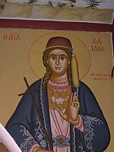 Μια από τις 40 ασκήτριες παρθένους που μαρτύρησαν μαζί με το δάσκαλο τους Άγιο Αμούν, επί βασιλέως Λικινίου στην Αδριανούπολη της Θράκης. Τα ονόματα τους όπως δίνονται είναι Αδαμαντίνη, Αθηνά, Ακριβή,