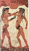 Αρχαίος Έλληνας Ολυμπιονίκης, από την Ηραία της Πελοποννήσου, στο Στάδιον Παίδων (Αγώνας ταχύτητας 600 ποδιών κάτι σαν το σημερινό διακοσάρι) στην 99η Ολυμπιάδα το 384 π.Χ..