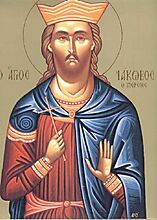 Ιάκωβος ο αδελφόθεος, αδελφός του Χριστού και γιος του Ιωσήφ του Μνήστορος, πρώτος Ιεράρχης Ιεροσολύμων. Είναι αυτός που έγραψε την πρώτη Θεία Λειτουργία της χριστιανικής Εκκλησίας. Μαρτύρησε στα χέρι