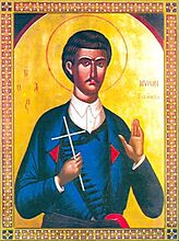 Ηρακλείου το άνθος το ευωδέστατον, ως ευσεβείας σε μύρον ύμνοις γεραίρομεν, νεομάρτυς του Χριστού Μύρων μακάριε. Συ γαρ νεότητος ακμήν υπερείδες ανδρικώς και ήθλησας στεροψ’υχως. Και νυν απαύστως δυσώπει, ελεηθήναι τας ψυχάς ημών.