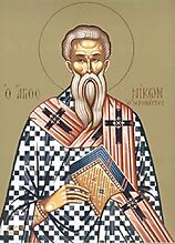 O Άγιος Νίκων, γεννήθηκε στη Νεάπολη της Ιταλίας, την εποχή του ηγεμόνα Κυντιανού, από πατέρα ειδωλολάτρη και μητέρα Χριστιανή, η οποία τον γαλούχησε σύμφωνα με τα ευαγγελικά δόγματα. Σε νεαρή ηλικία έγινε στρατιωτικός. Η ψυχή του όμως, ποθούσε τον βίο της άσκησης και της αφιέρωσης. Γι' αυτό ξεκίνησε για την περιοχή της Κωνσταντινουπόλεως, Έκανε όμως μία πρώτη στάση στη Χίο. Εκεί δέχτηκε το Άγιο Βάπτισμα και αφιερώθηκε στην ασκητική ζωή και στη μελέτη των Αγίων Γραφών. O τοπικός επίσκοπος, διέκρινε τα χαρίσματά του και τον χειροτόνησε πρεσβύτερο και λίγο αργότερα τον τοποθέτησε ηγούμενο 190 αδελφών για να τούς νουθετεί και να τούς καθοδηγεί. Πολύ γρήγορα, η συνοδεία απέκτησε μεγάλη φήμη. Όμως όταν εκοιμήθησαν οι γονείς του, ο Άγιος και η συνοδεία του, μαζί με άλλους εννέα, σχημάτισαν μια ευσεβέστατη αδελφότητα και εγκαταστάθηκαν στη Σικελία. Σύντομα όμως δέχθησαν την επίθεση του ηγεμόνα, αρνήθηκαν, συνελήφθησαν, υπέστησαν φρικτά βασανιστήρια και τέλος θανατώθηκαν.